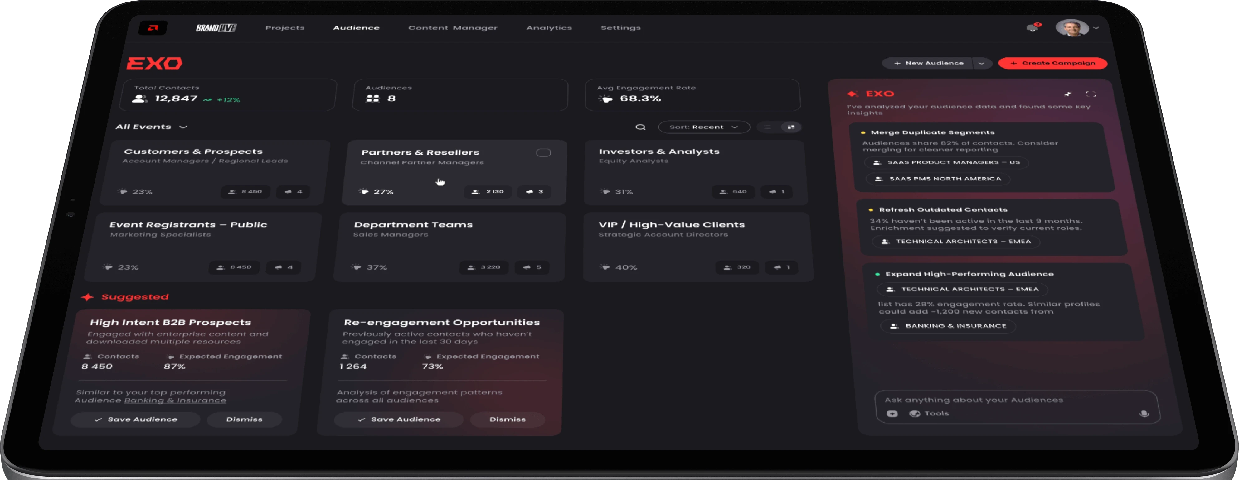 EXO is where automation meets ambition. Powered by a fleet of autonomous AI agents working alongside real human SDRs, EXO ensures every lead, invite, and follow-up lands with precision. It’s your intelligent campaign crew — building, enriching, and converting audiences faster than ever.
